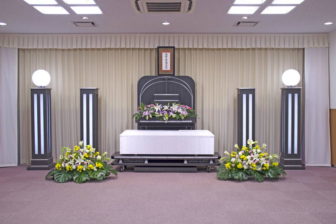 ご家族や親戚・親しい友人が相集い「故人様」を偲ぶ、心温まる 多目的スペースをご用意しました。洋風祭壇:イス席40席、遺族控室等を完備しています。