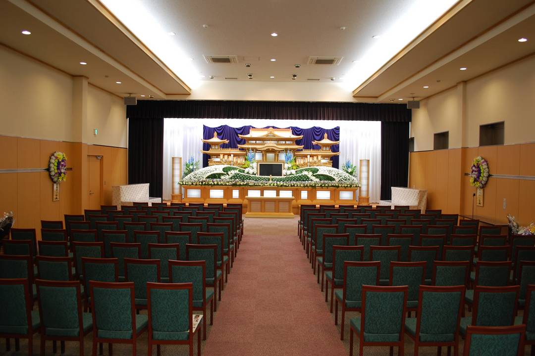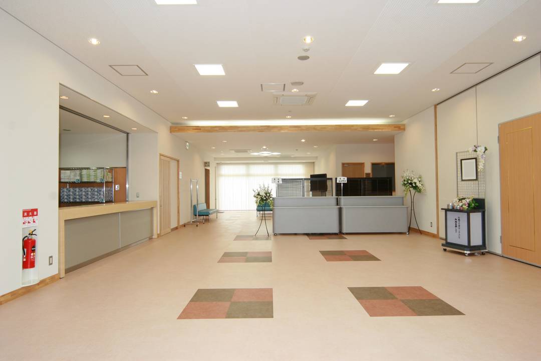 当会館では、お通夜、ご葬儀と最大200名様までお越し頂けるよう、ゆったりとしたホールと大駐車場に浴室、厨房まで完備した遺族控室を備え、残された最後の別れのときを安心してお過ごしいただけます。また、法事・法要にいたるまでトータルにご利用いただけます。